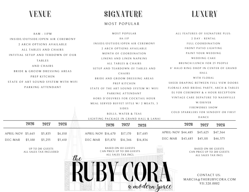 Oh my hogh! If you want spectacular views, and friendly loving service, book your event at The Ruby Cora! Amazing Space, perfectly situated, don't hesitate! As a wife of a DJ, I've seen a million wedding spaces and few compare to the natural beauty of the place, LOVE IT!!